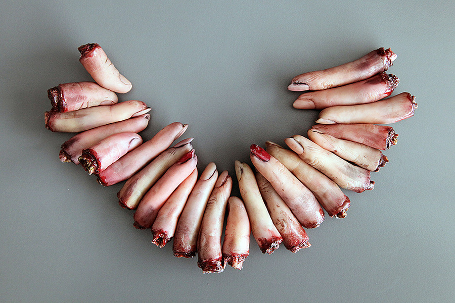 Palce użyte w filmie prezentowanym podczas wystawy Piotr Blamowski. Scenki obsesyjne. Każdy z unikatowych palców ma w sobie magnes. Po dokonaniu zakupu prosimy o kontakt z księgarnią celem wyboru konkretnego egzemplarza.