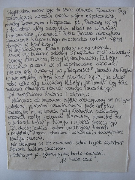 W dniach 22-26 września 2014 odbył się cykl warsztatów Czy przeczytasz mój list ? Został on zorganizowany we współpracy z Aresztem Śledczym w Krakowie, na terenie którego więźniowie dwukrotnie spotkali się z edukatorami z MOCAK-u. W ramach zajęć rozmawiano o źródłach twórczości oraz o relacji między byciem kreatywnym a przekraczaniem norm społecznych. Następnie uczestnicy wzięli udział w warsztatach na terenie Muzeum, nawiązujących tematycznie do wystawy Zbrodnia w sztuce. W ramach projektu powstały listy inspirowane dziełem Grzegorza Drozda Listy do brata (2010).
