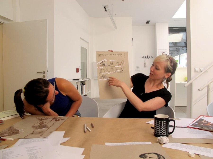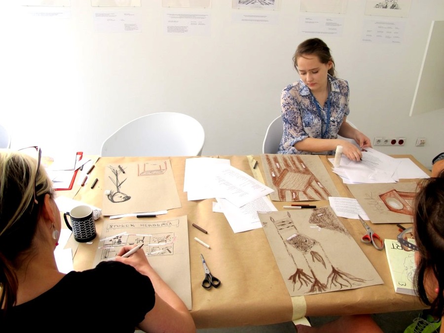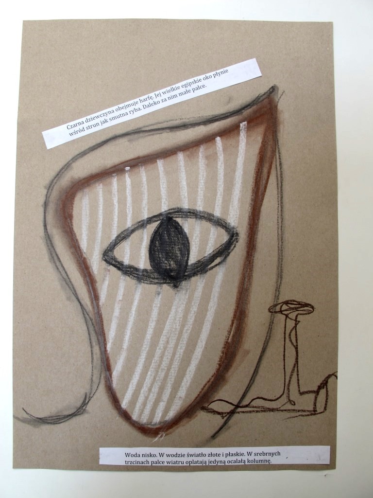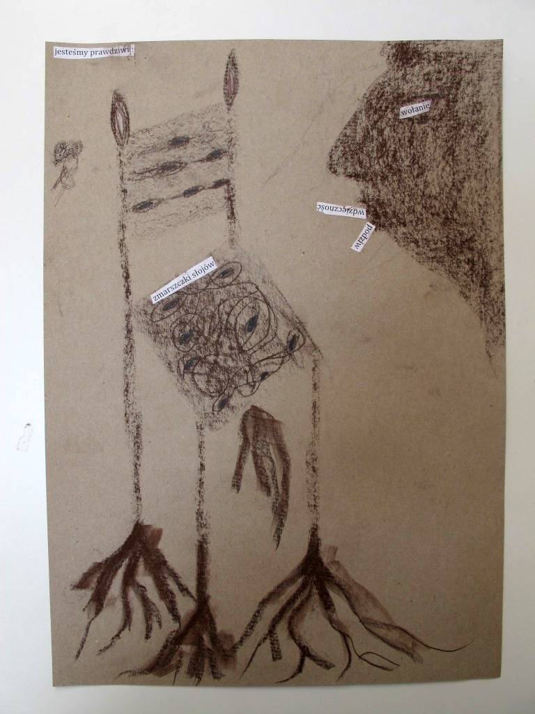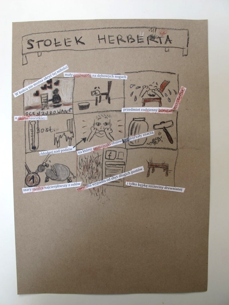 Szczególnie dużo uwagi poświęciliśmy wierszowi Stołek, będącemu tekstualnym odpowiednikiem portretów rysowanych przez Herberta. Zestawienie tego tekstu – a także kilku innych – z pracami obejrzanymi na wystawie w toku dyskusji i indywidualnej pracy skierowało uczestników w stronę przypuszczenia, że ważnym tematem twórczości artysty była tęsknota za komunikacją między ludźmi a przedmiotami codziennego użytku jako reprezentantami rzeczywistości. Dzieła powstałe podczas warsztatów przypominają dzięki temu mosty przerzucane tak między słowem a obrazem, jak i między portretowaniem tego, co stabilne i tego, co zmienne.