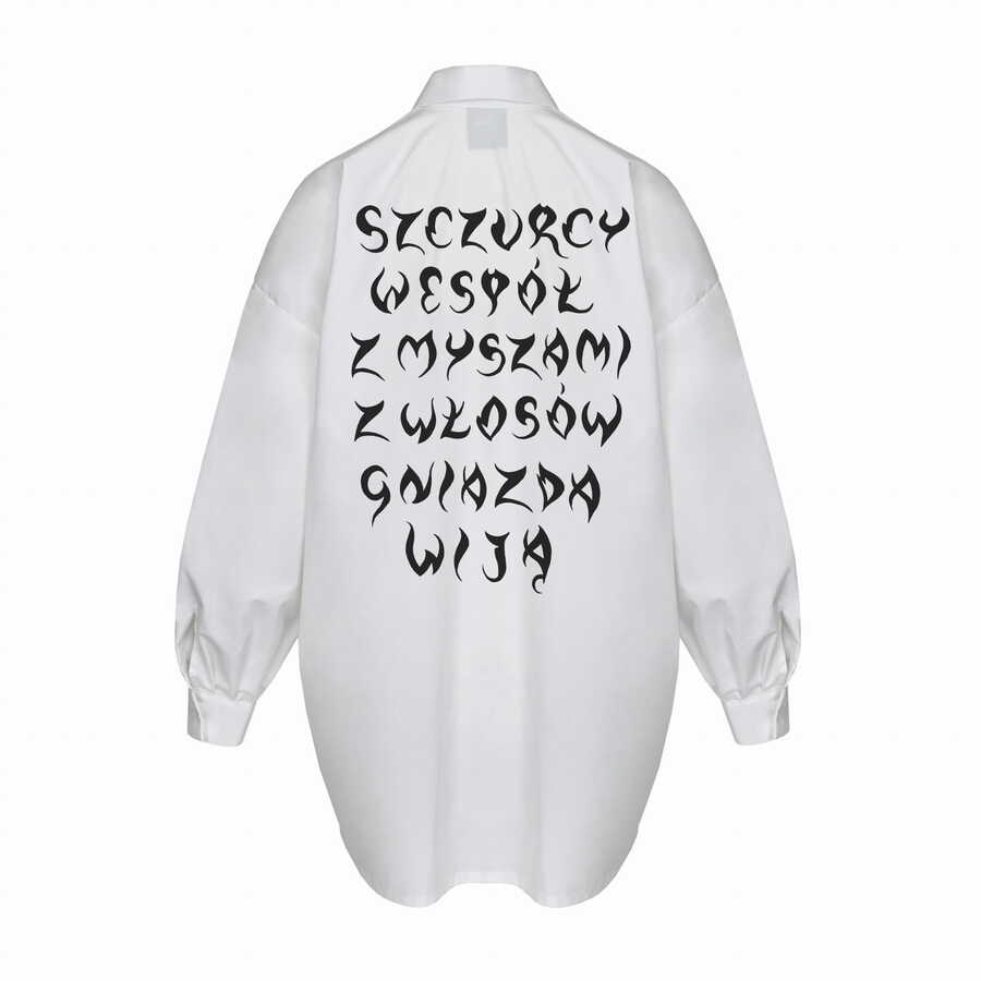 limitowana koszula z kołnierzykiem w kształcie ogni, z autorską grafiką Aleksandry Waliszewskiej