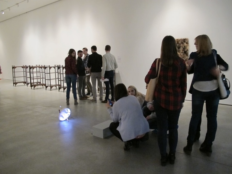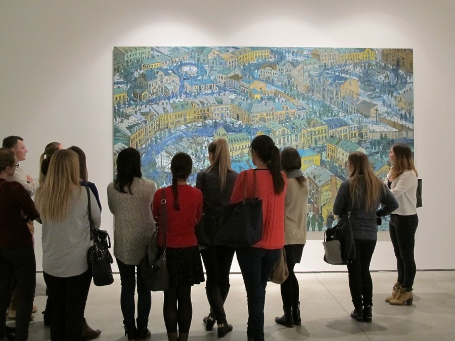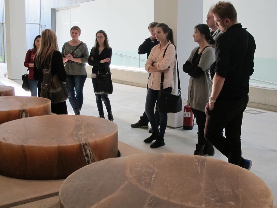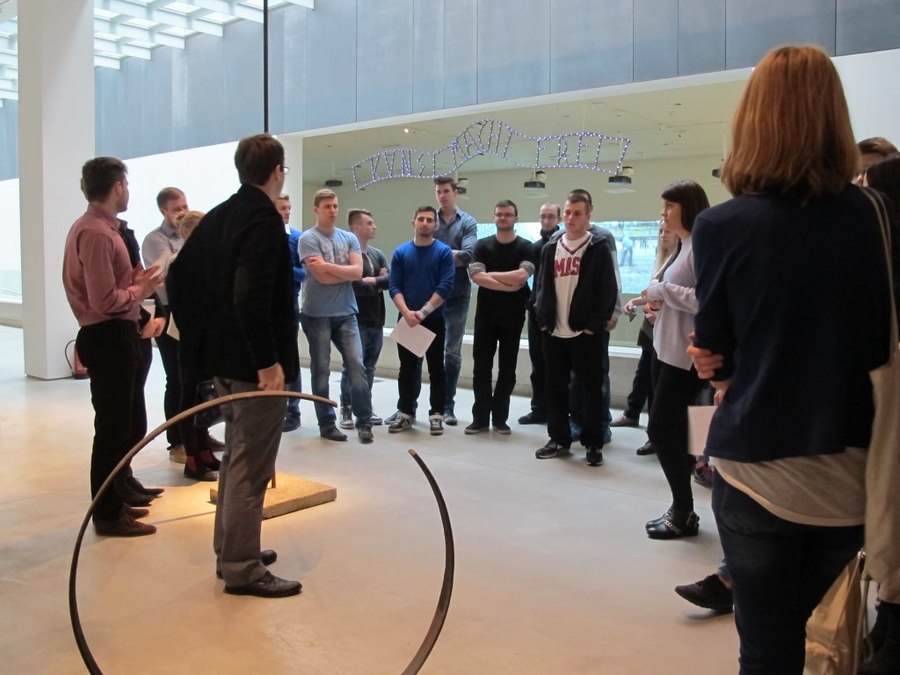 Następnie studenci pracowali na terenie ekspozycji Kolekcji MOCAK-u, rozmawiając o wybranych dziełach sztuki w kontekście ich wartości ekonomicznej na podstawie informacji przygotowanych wcześniej przez niektórych członków grupy.